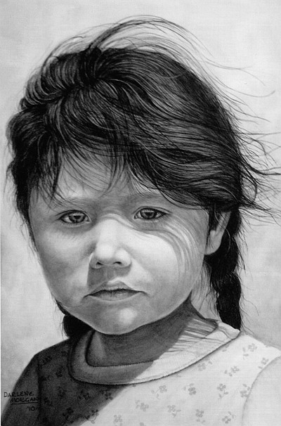Perhaps the eyes are what earned Darlene Morgan’s India ink wash portrait of a young Native American girl two People’s Choice awards in the last year. Or Maybe it’s the attention to detail or the shadows of hair framing the girl’s face that nabbed her the people’s choice prize first at the Hockaday Museum of Art in Kalispell’s annual members salon last December and and then at the Bigfork Art and History Museum’s annual members show in June.