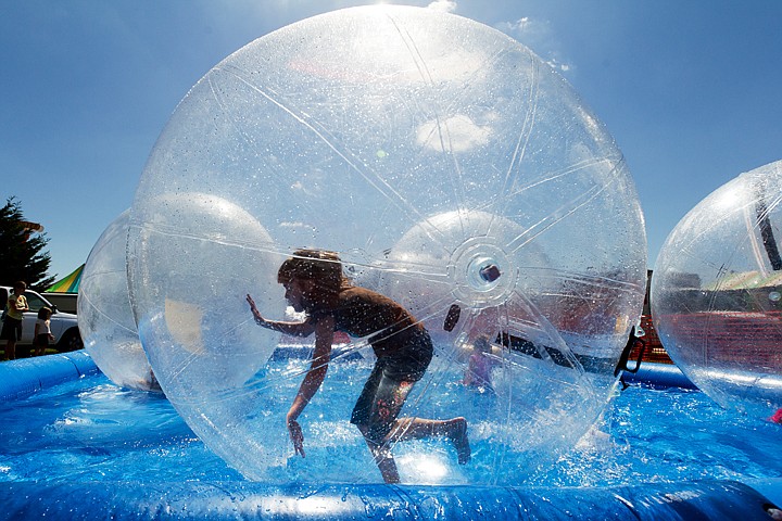 The 6-year-old's mother, Jodi, smiled as she watched him maneuver inside the giant, transparent ball in a pool of water.