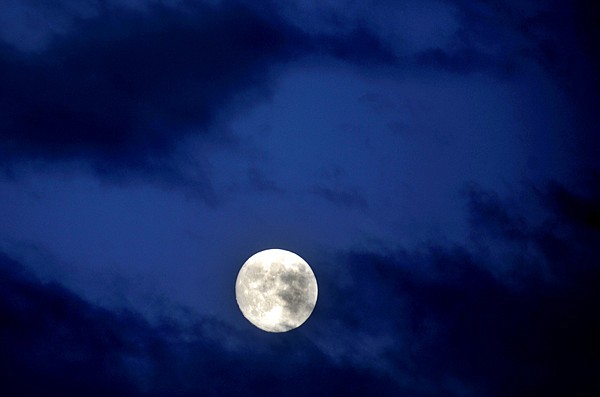 A nearly full moon is partially obscured by clouds on Wednesday, August 29, just south of Whitefish. Tonight sky watchers will get to see a blue moon, the second full moon for the month of August. The next blue moon is predicted to occur in July 2015.