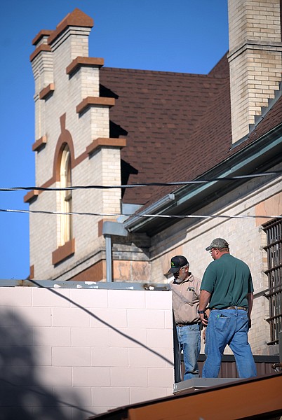 County maintenance staffers were on the roof Thursday repairing the torn metal corner used in Wednesday’s escape.