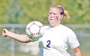 Senior midfielder Breanna Opland controls the ball in the Lady Loggers tie to the Lady Yellowjackets.