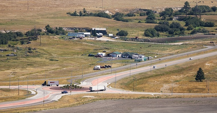 Trucks drive through a roundabout on the U.S. 93 Alternate Route on Thursday afternoon.