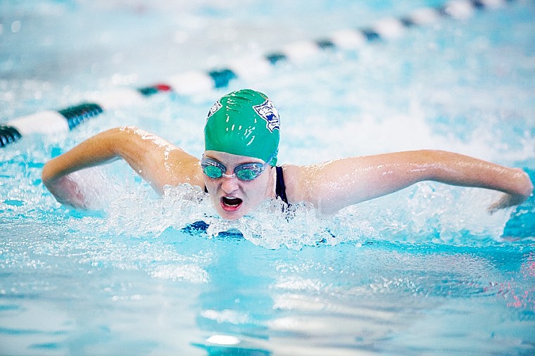 Glacier's Sara Burch swims the butterfly in the 200-yard medley relay Saturday afternoon during the Kalispell Invitational swim meet at The Summit.