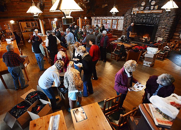 A flurry of activity takes place at the Flathead Lake Lodge on Friday afternoon, November 30, as volunteers gather to help pack holiday boxes destined for three units in Afghanistan on Friday afternoon, November 30, as part of the Scott Vallely Soldiers Memorial Fund at Flathead Lake Lodge.