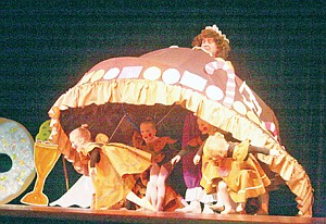 Doug Roll, Libby mayor, portrayed Mother Ginger as the Ginger Snaps found their way to the stage from under his hoop dress.