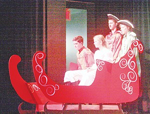 Clara, aka Isabelle Martineau, and the Nutcracker Prince, Landon Wilkinson, are pushed in the sleigh.