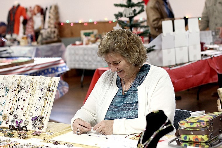 JoEllen Godin of Superior puts the finishing touches on a necklace at the St. Regis Christmas Bazaar.