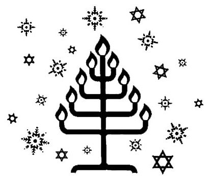 Stone created a multi-faith piece of art for the cover of the concert program, a menorah in the shape of a Christmas tree, surrounded by snowflakes and stars of David.