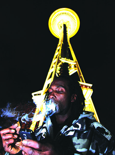 SEATTLE - People openly lit joints under the Space Needle and on Seattle's sidewalks - then blew the smoke at TV news cameras. To those looking to "get baked," the city's police department suggested pizza and a "Lord of the Rings" movie marathon.