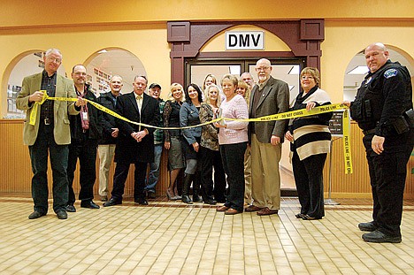 After several days of moving, the staff of the Bonner County Department of Motor Vehicles set up shop in Bonner Mall, officially opening for business Monday morning. Bonner County commissioners Lewis Rich, Cornel Rasor and Mike Nielsen, commissioner-elect Cary Kelly and Ponderay Mayor Carol Kunzeman stopped by the new location to participate in the ribbon-cutting and inspect the new office.