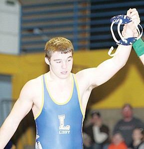 Libby competed well at almost every weight class, but a special notice goes to freshman Josh McGough, who wrestled up from his usual 215 to face Bonners’ big heavyweight Cody Lucky.