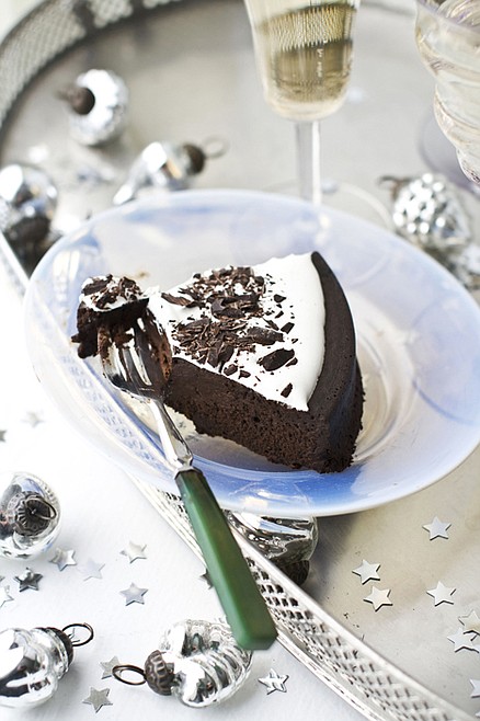 But you don't want to spend hours making it. The answer? A flourless chocolate cake. It's like a baked truffle - simple, yet sensational enough to impress your guests. All you have to do is dress it up with whipped cream and fresh berries. Be sure to cut small slices from this; it really is amazingly rich.