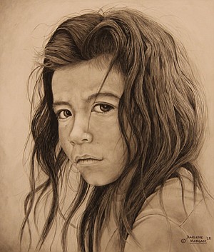 For the past 45 years, Morgan has loved painting American Indian people and strives to capture their pride and ethnicity. She concentrates on the very old and the very young, captivated by the innocence of youth and wisdom and character of the elderly.
