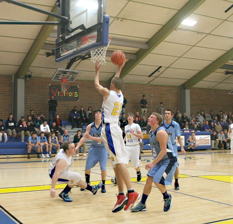 Baptiste Seynaeve, the lead scorer for Thompson Falls goes to put up some points during the game against Loyola.