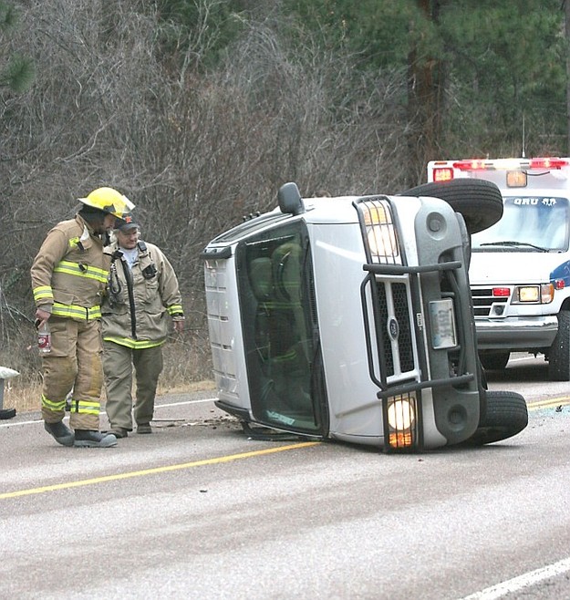 Plains-Paradise Rural Fire District arrived and secured the scene and quickly set up traffic control and investigated the vehicle, which lay on its side in the center of the road. The firefighters cut the battery and checked for leaks.