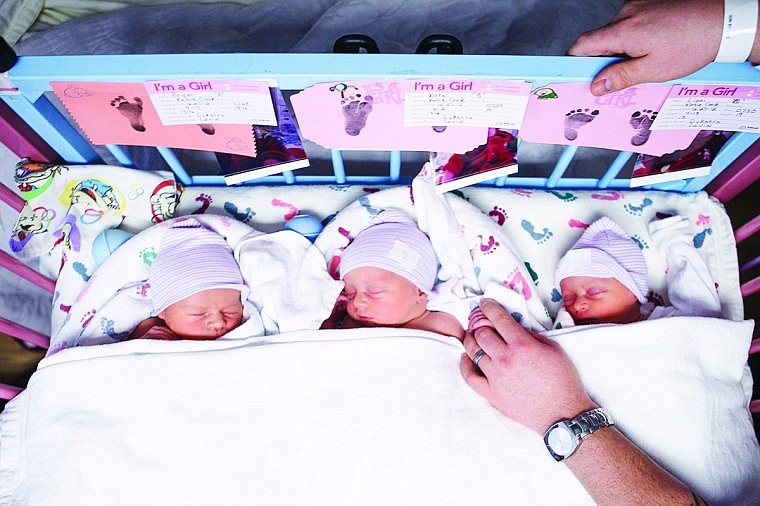 In the nick of time on Thursday, Graham and Katie Cook of Eureka scored three more 2012 tax deductions with the birth of fraternal triplets Prym, Kara and Lioni.