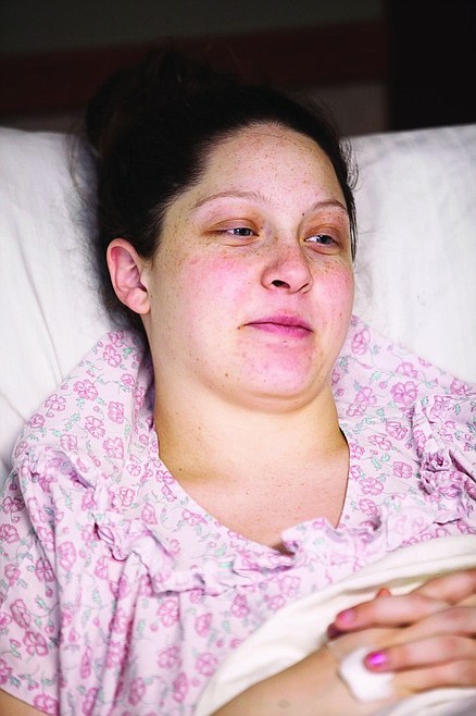 Katie Cook in her hospital bed Friday afternoon at Kalispell Regional Medical Center.