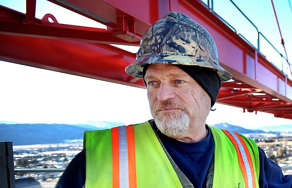Jeff Halsey foreman for Swank Construction, takes in the view from the crane at the Kalispell Regional Medical Center expansion on January 12.