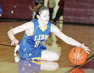Sophomore Taylor Quinn tries to save the ball from going out of bounds but comes up short in second quarter action in Troy Jan. 27