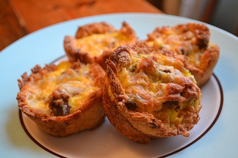 • Beat eggs, milk, and pepper and divide evenly among muffin cups.