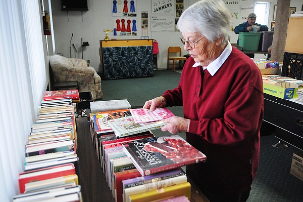Blanche Zenz, of Columbia Falls, lays out book for the annual North Valley Senior Center Book and Puzzle Sale on Thursday afternoon in Columbia Falls. The sale starts today and continues on Saturday. The sale will be open to the public from 9 a.m. to 4 p.m. both days.