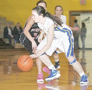 Lindsay Laws steals the ball from Kaitlyn Downey in first quarter vs. Troy, Jan. 2.