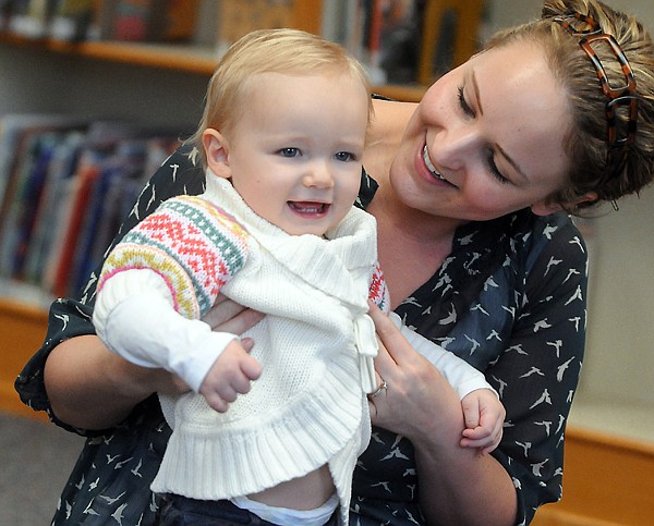Brianna Smith of Kalispell plays with her 18-month-old daughter Lyla at the Books and Babies time at the Flathead County Library.
