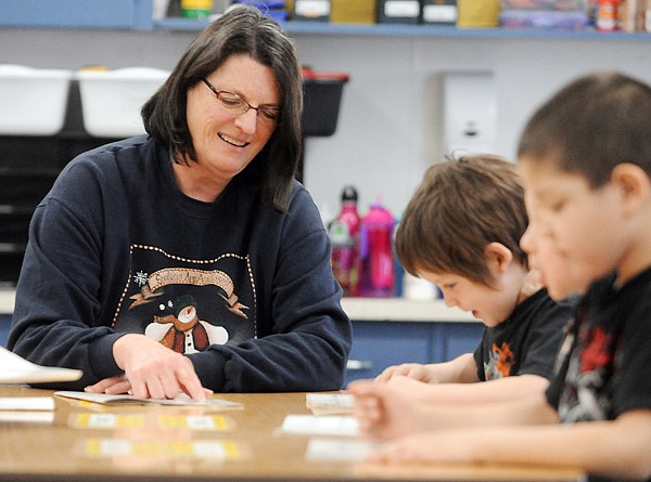 LuAnn Servo works with students as a paraprofessional on Tuesday at Elrod School in Kalispell.