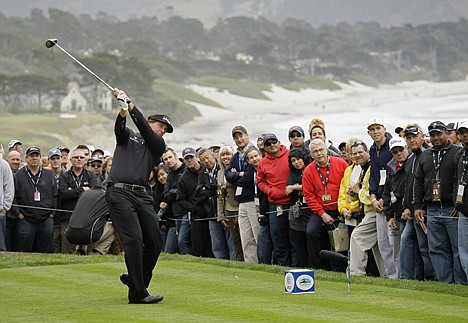 PEBBLE BEACH, Calif. — Phil Mickelson rallied from six shots behind to win for the fourth time at Pebble Beach, a final round made even more memorable by the guy in a red shirt who was among the first to congratulate him Sunday on the 18th green.
