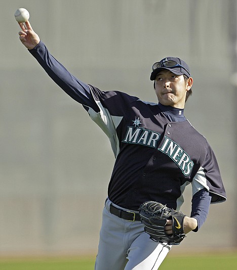 The center of attention for the brief Sunday morning session under a bright blue sky at the Peoria Sports Complex was the team's newest import from Japan.