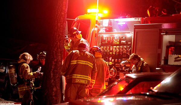 Members of the Smith Valley Fire Department on the scene of a fire in Kila on Tuesday night.