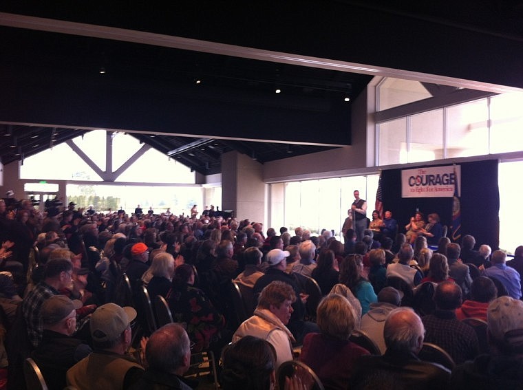 Presidential hopeful Rick Santorum is speaking to a packed house at the Hagadone Event Center right now.