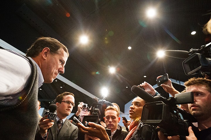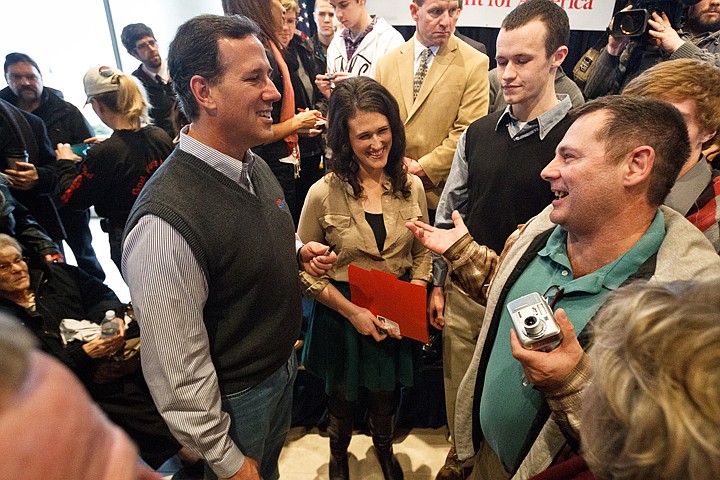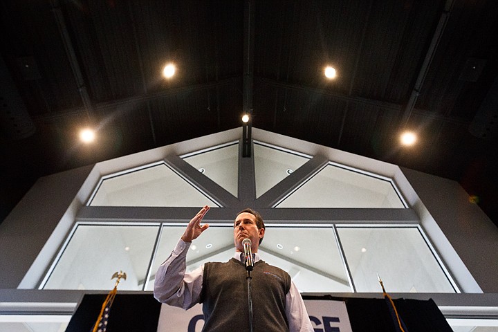 Labeled by polls as the leading presidential hopeful for the Republican party, Santorum dropped into Coeur d'Alene Tuesday afternoon to push his platform, leaving no room for doubt of his conservative social values and commitment to restricted spending and small government.