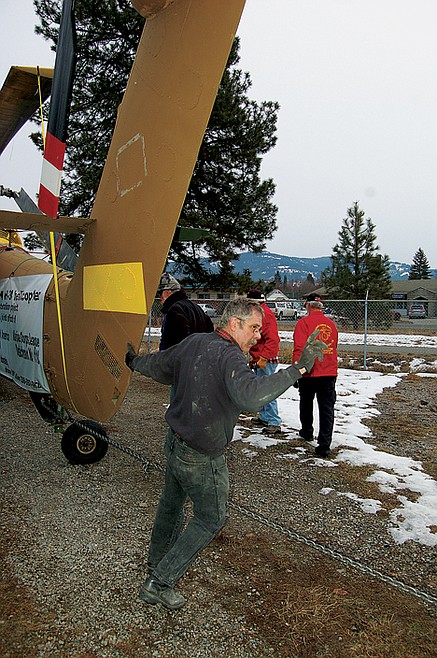 For almost a year, the inoperable H-34 helicopter has sat in the ARC Quality Collision Repair parking lot, an area visible to drivers on U.S. 2.