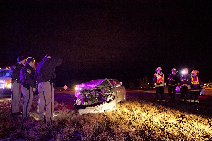 Emergency crews respond to a crash on U.S. 93 near the Majestic Valley Arena Friday night.