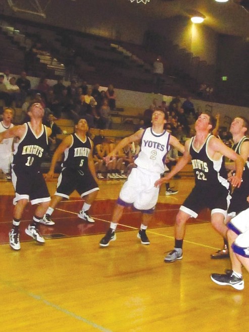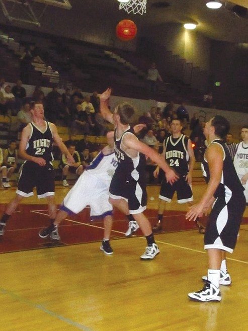 Part of the difficulty was the loss of 6-3 Kent Christensen for nearly a half. The most aggressive of the Knights was poked in the eye in the first quarter.