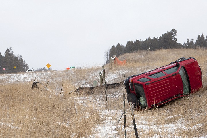 West Valley Fire and Rescue responded to this one-vehicle rollover on U.S. 93 Monday morning. No one was injured in the crash. Icy roads contributed to several accidents across the Flathead Valley on Monday.