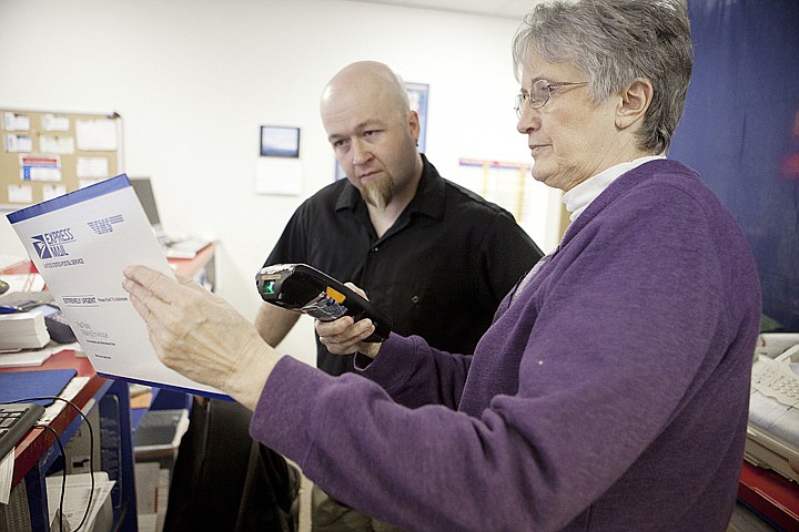 Tuesday — an unusually busy day following the President's Day holiday - was the changing of the guard at the Evergreen Post Office as Holmquist, 31, worked the counter for the first time. Graham spent most of her time behind the scene, answering any questions and helping sort mail.