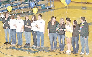 Pep Band and cheerleader senior night during half time of Libby/C-Falls boys basketball game Saturday.