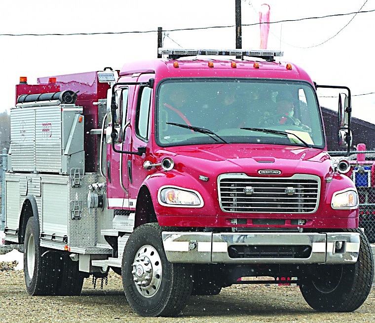 The newest fire engine of the Plains Paradise Rural Fire Department being driven to the back to be filled up with water.