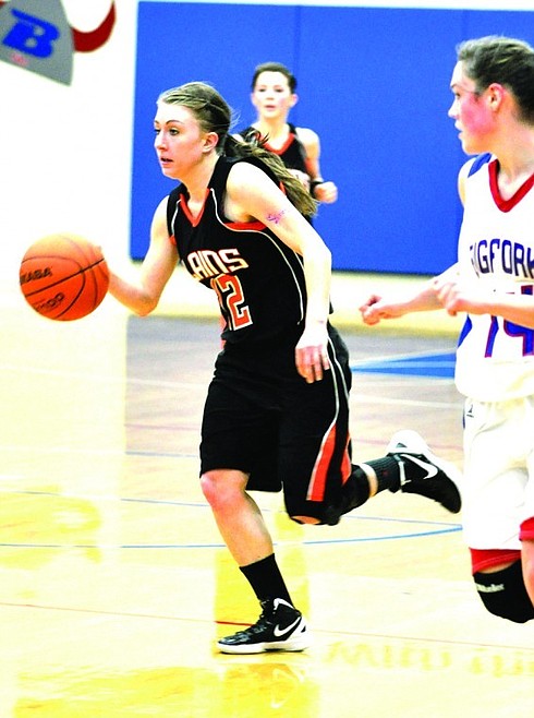 Kelsey Beagley of Plains (left) charging up the court against Bigfork.
