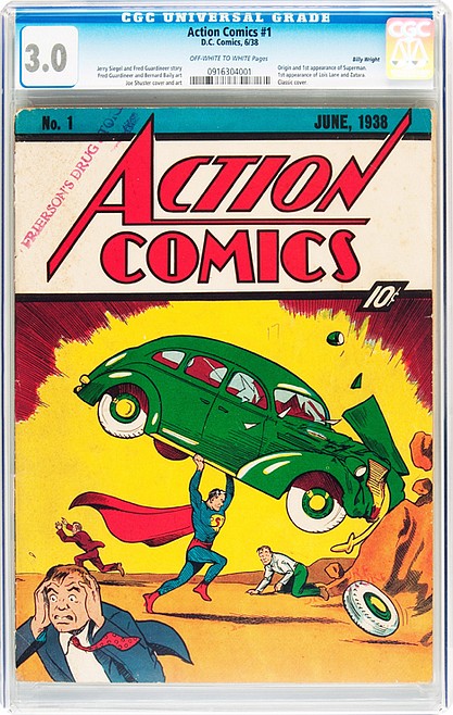 Action Comics No. 1, a 1938 issue featuring the first appearance of Superman, sold for about $299,000; Batman No. 1, from 1940, sold for about $275,000; and Captain America No. 2, a 1941 issue with a frightened Adolf Hitler on the cover, brought in about $114,000, Allen said.