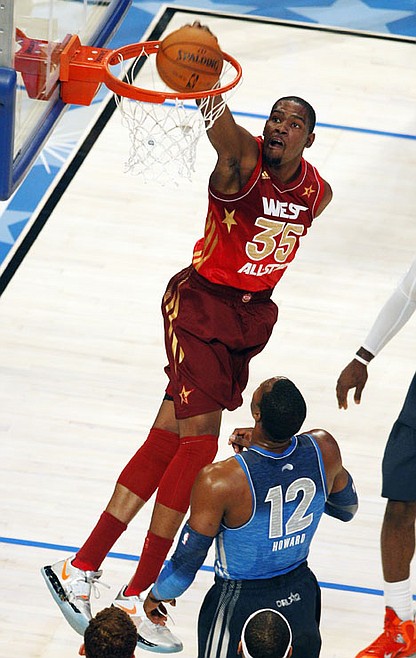 Durant and Thunder teammate Russell Westbrook helped shoot the West to a big lead. James and Dwyane Wade almost brought the East all the way back before James' turnover in the final seconds allowed the West to escape with a 152-149 victory.
