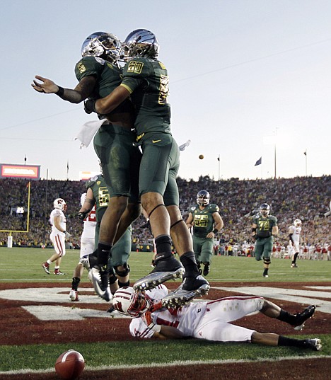 Darron Thomas passed for three touchdowns, De'Anthony Thomas scored on runs of 91 and 64 yards, and the No. 6 Ducks earned their first bowl victory under coach Chip Kelly, holding off Wisconsin 45-38 Monday night in the highest-scoring Rose Bowl ever played.