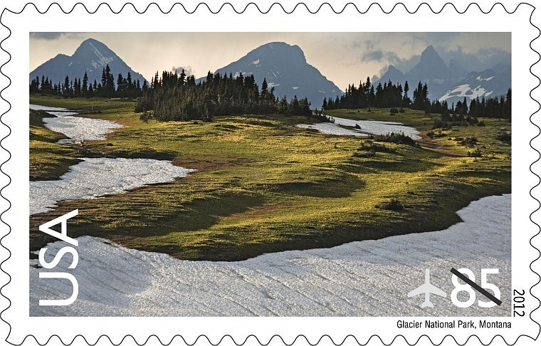 This new international-rate postage stamp features an image of Glacier Park's Logan Pass. The photo was taken by National Geographic photographer Michael Melford.