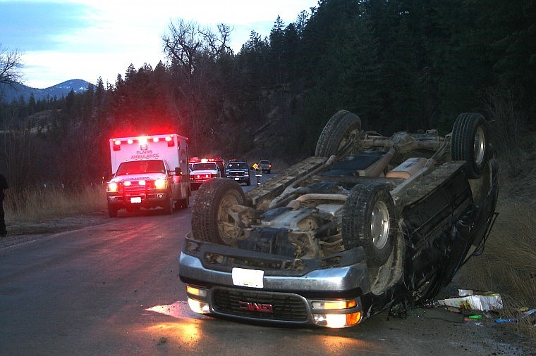 Plains Ambulance and Plains-Paradise Rural Fire Department arrived on scene of a single-vehicle rollover accident Jan. 4 on River Road West in Plains. The driver, Denise Moreth of Plains, was not harmed in the accident and attributed the incident to icy roads.