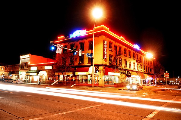 The lights of the Kalispell Grand Hotel glow brightly against the night sky on Wednesday in downtown Kalispell.