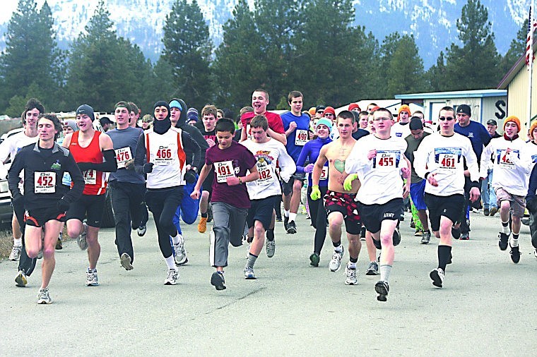 Moments after the start of the New Year's Day Run near the Elks Club in Thompson Falls.