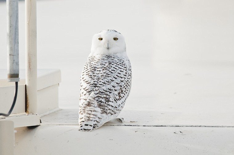 A snowy owl perches on top of a water tower near Mission View Drive in Polson Friday afternoon.