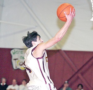 Senior guard Creede Garcia penetrates a tough Ronan defense to score in the third quarter vs the Chiefs.